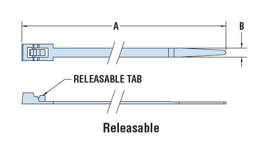 | Tensile Strength | Max. Bundle Diameter | Natural | UV Black | A Length | B Width | |||||