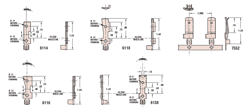 • Use inexpensive Heyco load pins (consult Heyco for details on our complete line of blades and pins).