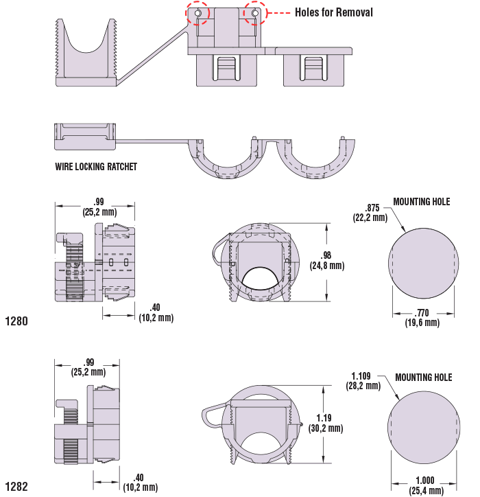 Heyco® Nylon Removable Snap-In Ratcheting Strain Reliefs