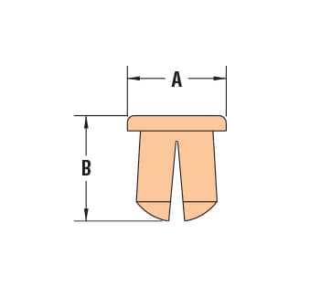 | MOUNTING HOLE DIAMETER | THICKNESS RANGE | Black | Natural | A Head Diameter | B Overall Height | ||||||||||
