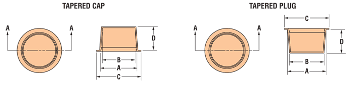 HEYCap Tapered Plugs** for NPT Threaded Mounting Holes - Body Diameters reference Outside |