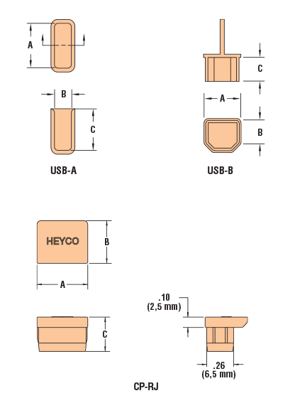 | 2962 | USB B-Plug | .36 | 9,0 | .25 | 6,4 | .25 | 6,4 |