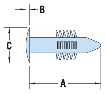 | MOUNTING HOLE DIA. | ASSEMBLED PANEL THICKNESS | A Length | B Head Height | C Head Diameter | |||||||||