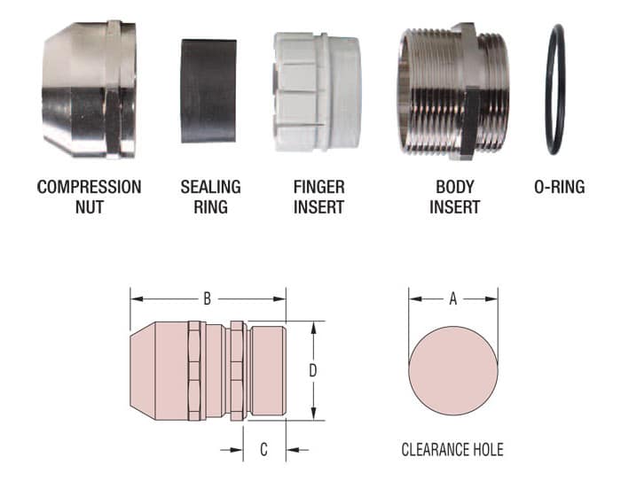 | Material | Nickel-plated Brass w/polyamide PA 6 finger insert, TPE Sealing Gland and Buna-N O-Ring | |