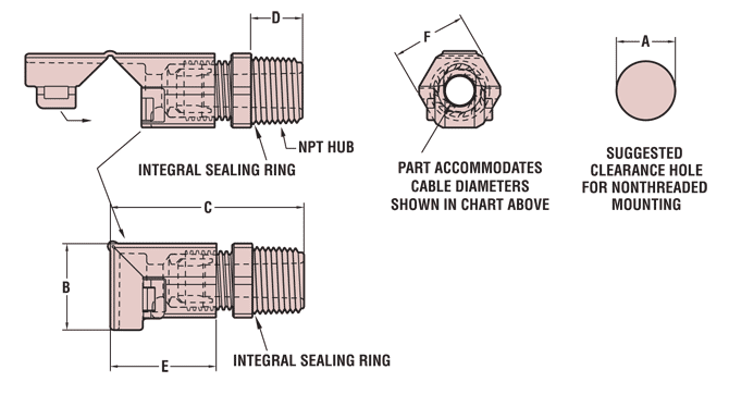 Right Angle, NPT Hubs with Integral Sealing Ring