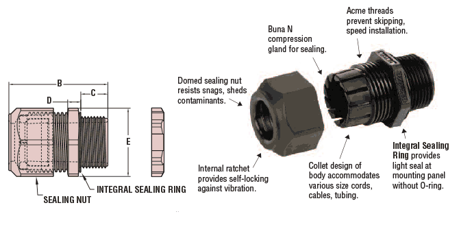 | Material | Nylon 6/6 w/Buna N or TPE Sealing Gland | |