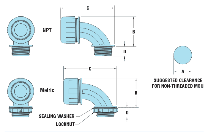 Heyco® Nylon Conduit Fittings – 90° Sweep Fittings